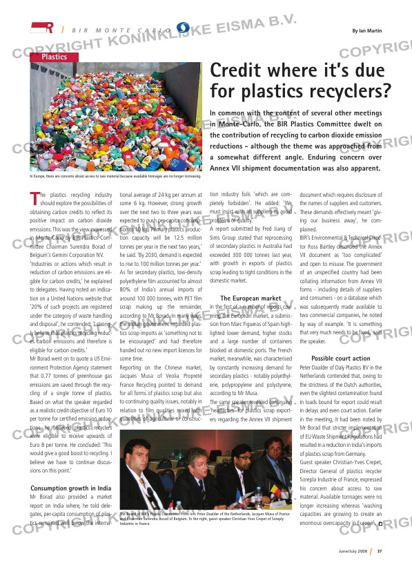 in Monte-Carlo, the BIR Plastics Committee dwelt on