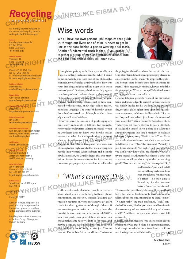 Wise words is a month ly busi ness mag a zine for the inter na tion al recy cling indus try