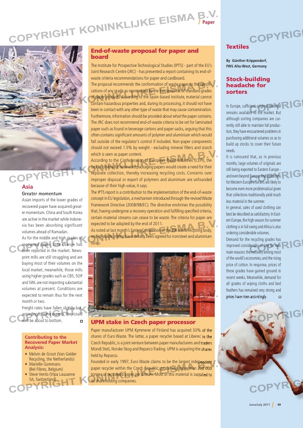 shares of Euro Waste. The latter, a paper recycler based at Liberec in the