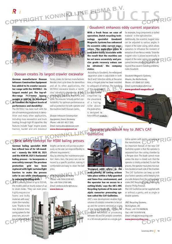 ... Fax: +44 115 9791478, Email: [email protected] www.jmcrecycling.com RI-5_ProductNews.indd 13 18-06-13 09:54 recycling rate...