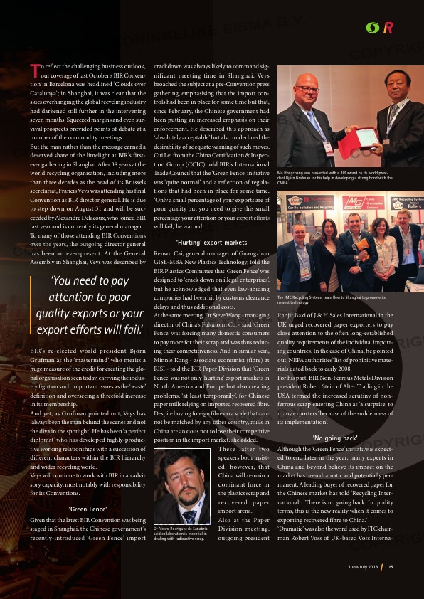 The JMC Recycling Systems team fl ew to Shanghai to promote its