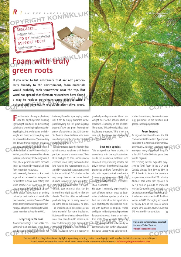 The wood foam is described as ‘an