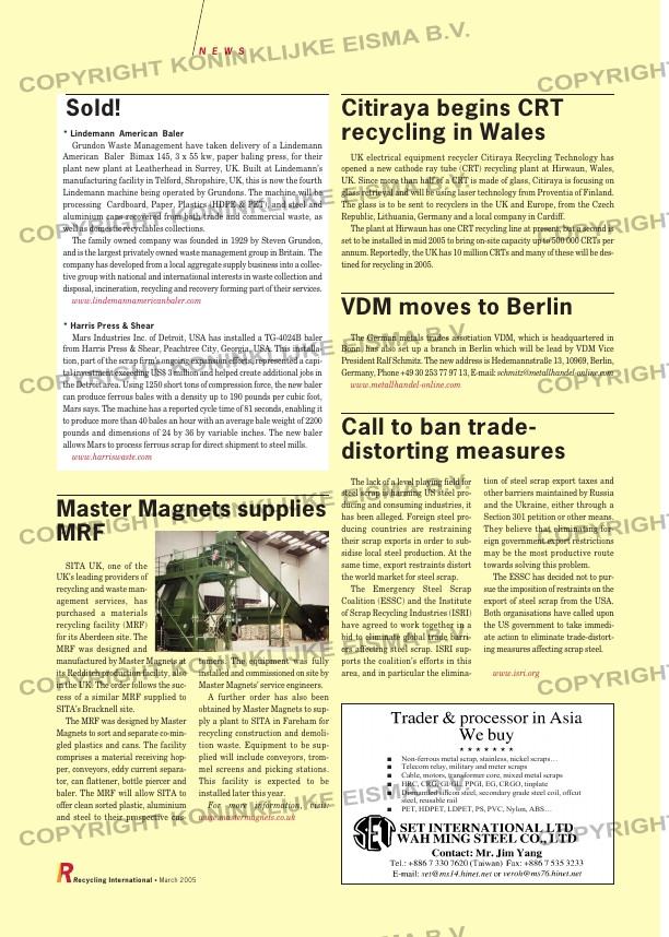 annum. Reportedly, the UK has 10 million CRTs and many of these will be des-
