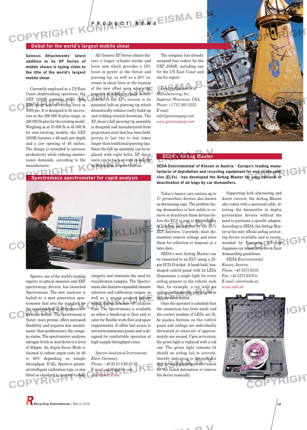 facturer of depollution and recycling equipment for end-of-life vehi-