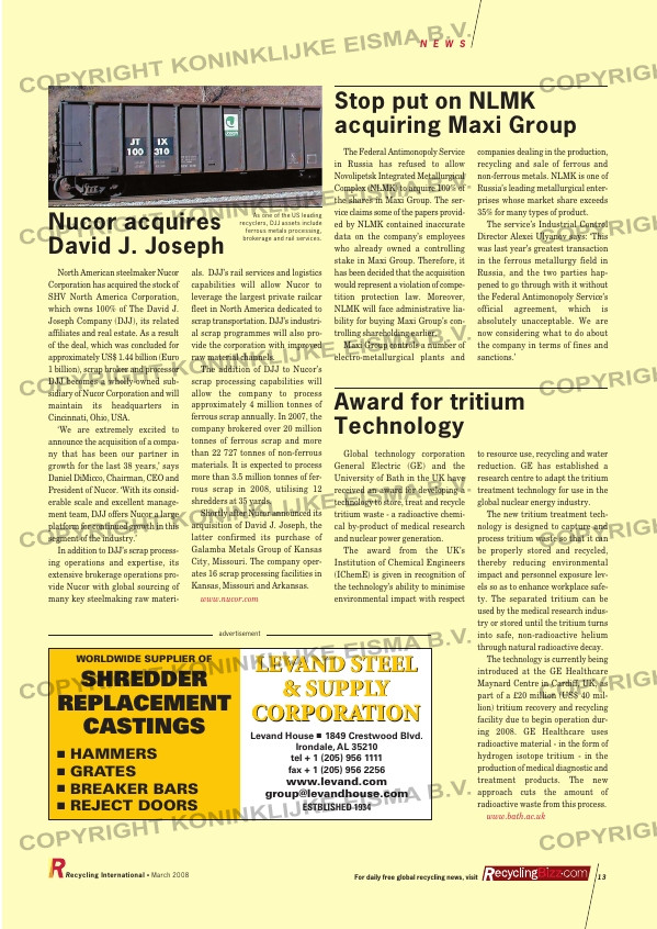 Recycling International • March 2008 13For daily free global recycling news, visit