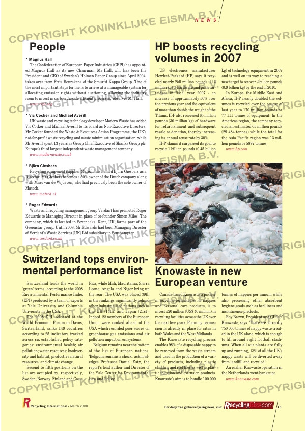 ...rrive at a manageable system for allocating emission rights without auctioning, allowing the industry room to invest in carbon dioxide efficient processes,’ observes Mr Hall. www.cepi.org * Vic Cocker and Michael Averill UK waste and recy...