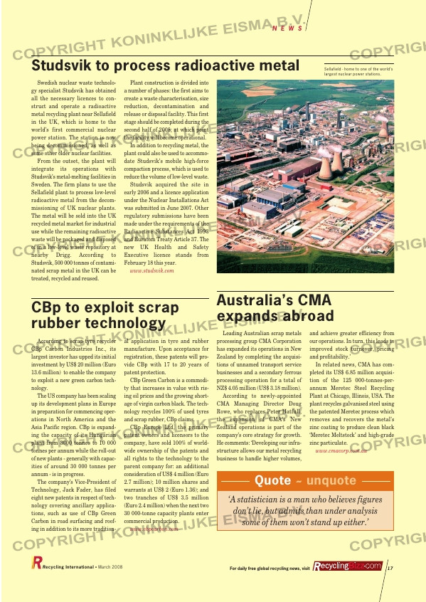 Recycling International • March 2008 17For daily free global recycling news, visit