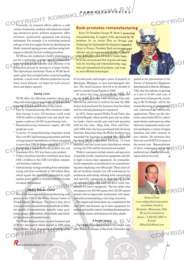 ...sing tech- niques to identify the best welding procedure. NC3R has also conducted a facility-planning pro- ject for a carburettor and fuel injection remanufac- turer to increase the capacity and efficiency of its production process by moving...