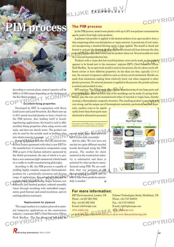 ...d-cell foam between the skin material. The mould is then cooled and the product taken out. Several moulds are used on a carousel-based production line. ‘Products with a virgin skin but recycled polymer cores can be made, so the product ap...
