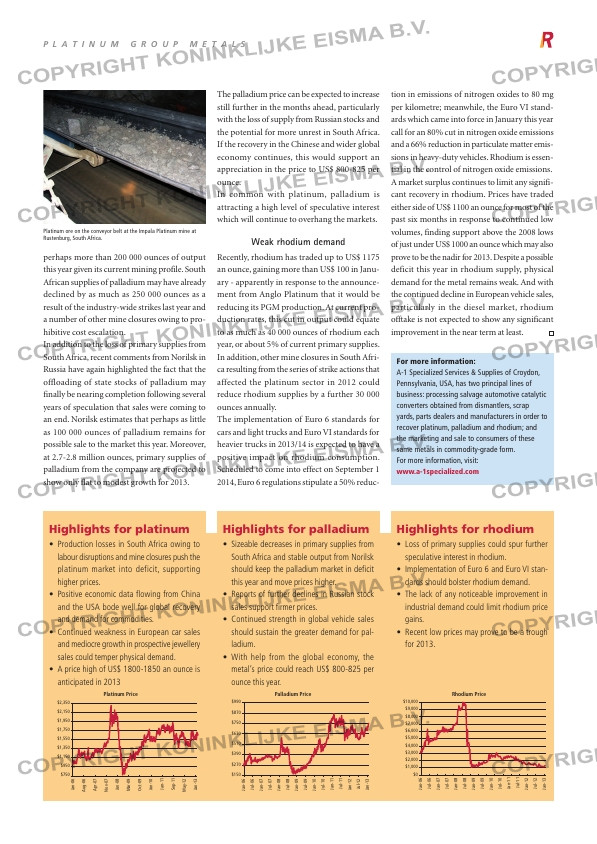 Platinum ore on the conveyor belt at the Impala Platinum mine at