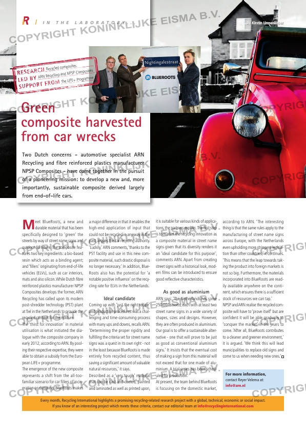 ...cled com posites ARN Recycli ng and NPSP Composites the LIFE+ Pr ogramme RI_2-IntheLab.indd 91 06-03-13 08:57 recycling rate...