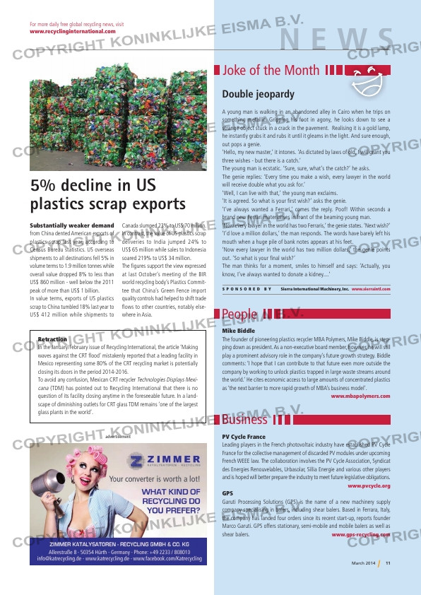 In the January/February issue of Recycling International, the article ‘Making