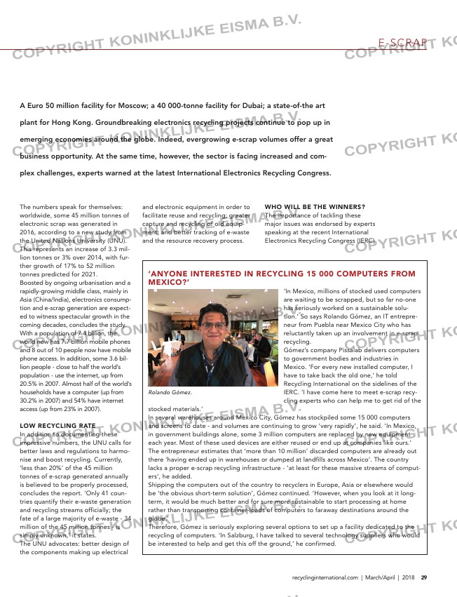 ...nd get this off the ground,’ he confirmed. Rolando Gómez. 28-29-30-31-32-33_iercreport.indd 29 15-03-18 14:35 recycling rate...