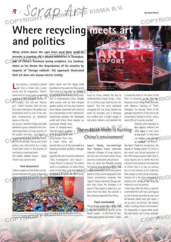 ... Nobody with expertise in the industry believes the 20% fi gure is even close to the truth. So why does Liu Jianhua care enough to overlook - or distort - the facts? From his perspective, the export of ‘foreign waste’ to China is ...
