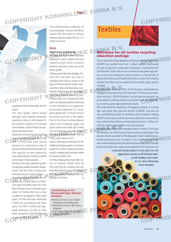 ...um) • Joel Litman (Texas Recycling/ Surplus Inc, USA) RI 4-Analysis Paper&Textiles.indd 85 04-05-15 09:31 recycling rate...