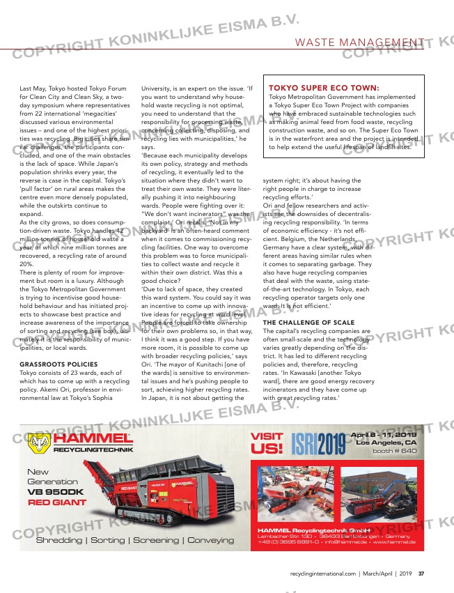 37recyclinginternational.com | March/April | 2019