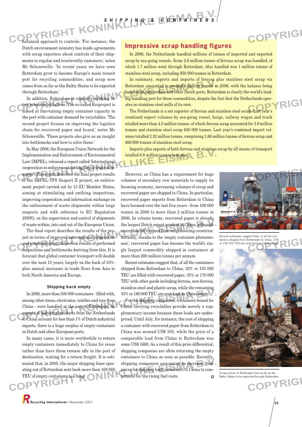 ...ments’. This report describes the final project results of the IMPEL-TFS Seaport II project; an enforce- ment project carried out by 13 EU Member States, aiming at stimulating and unifying inspections, improving cooperation and information e...