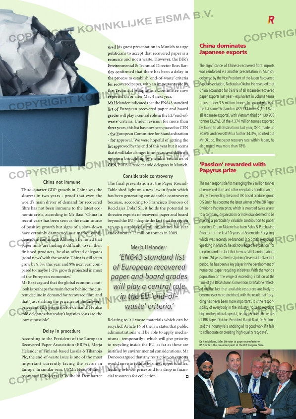 for recovered paper, with an important vote by