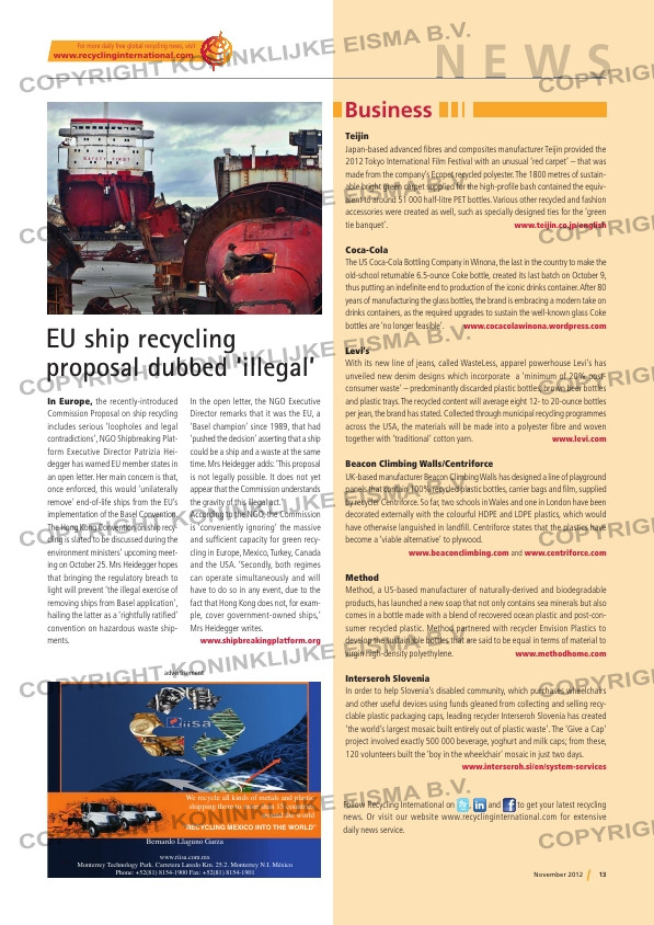 news. Or visit our website www.recyclinginternational.com for extensive