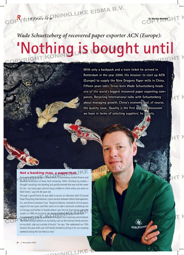 Wade Schuetzeberg of recovered paper exporter ACN (Europe):