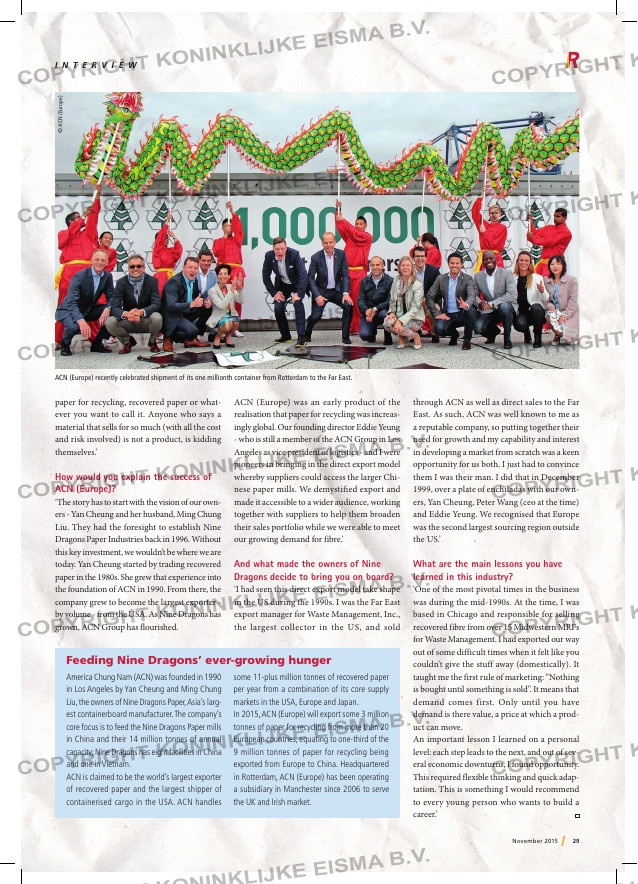 ACN (Europe) recently celebrated shipment of its one millionth container from Rotterdam to the Far East.