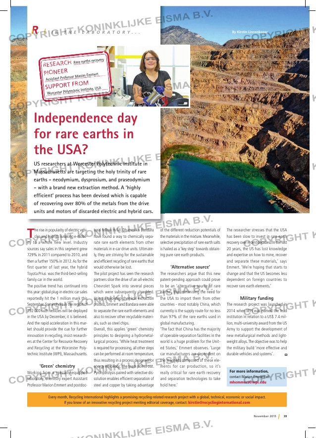 Every month, Recycling International highlights a promising recycling-related research project with a global, technical, economic or social impact.