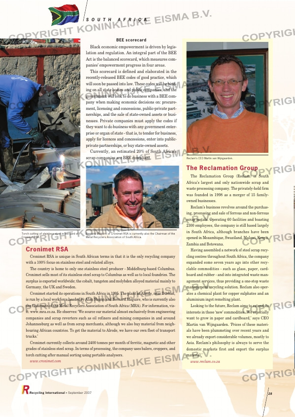 Cronimet RSA is unique in South African terms in that it is the only recycling company