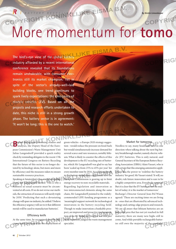 ...egy sugges- tion - would reduce the pressure on fossil fuels but would simultaneously increase demand for several scarce and rare resources, notably lithi- um. What is likely to counter the effects of this development is the EU recycli...