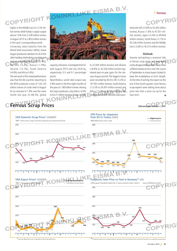 Ferrous Scrap Prices Reference date: October 1, 2016