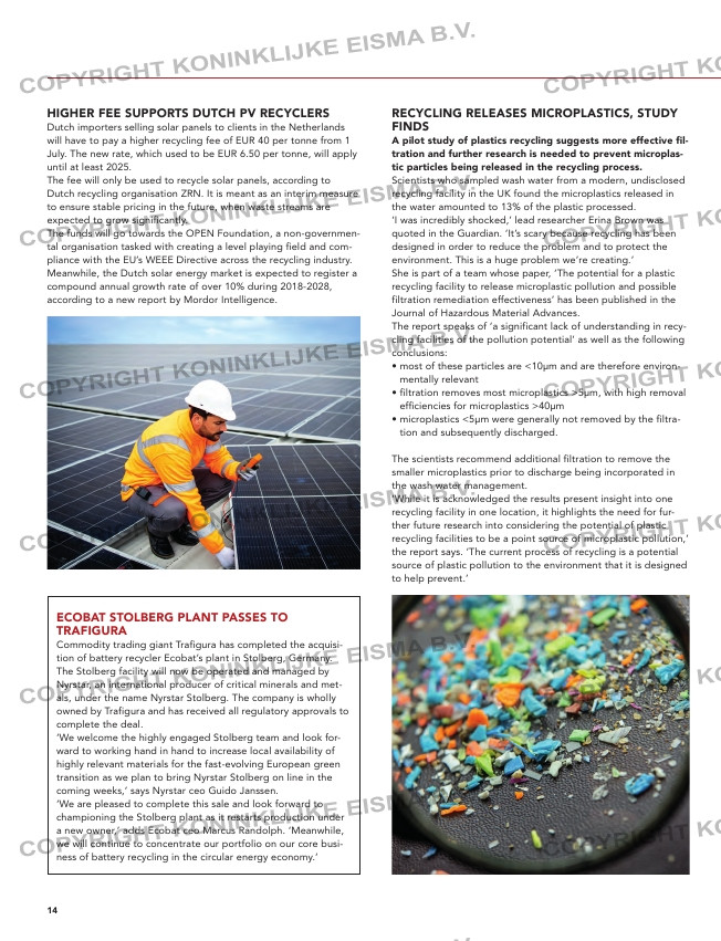 HIGHER FEE SUPPORTS DUTCH PV RECYCLERS