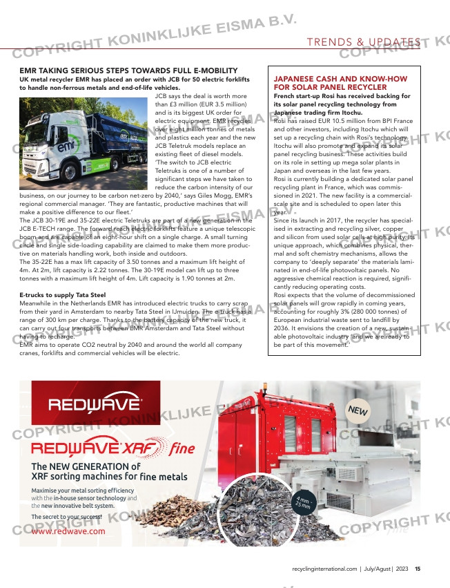 UK metal recycler EMR has placed an order with JCB for 50 electric forklifts