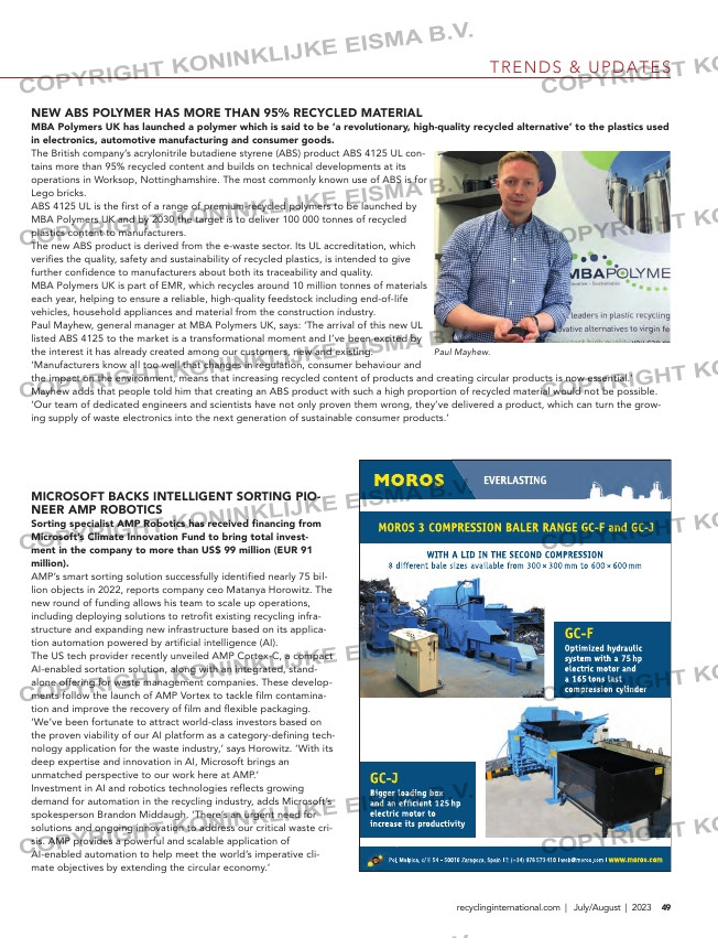 Paul Mayhew, general manager at MBA Polymers UK, says: ‘The arrival of this new UL