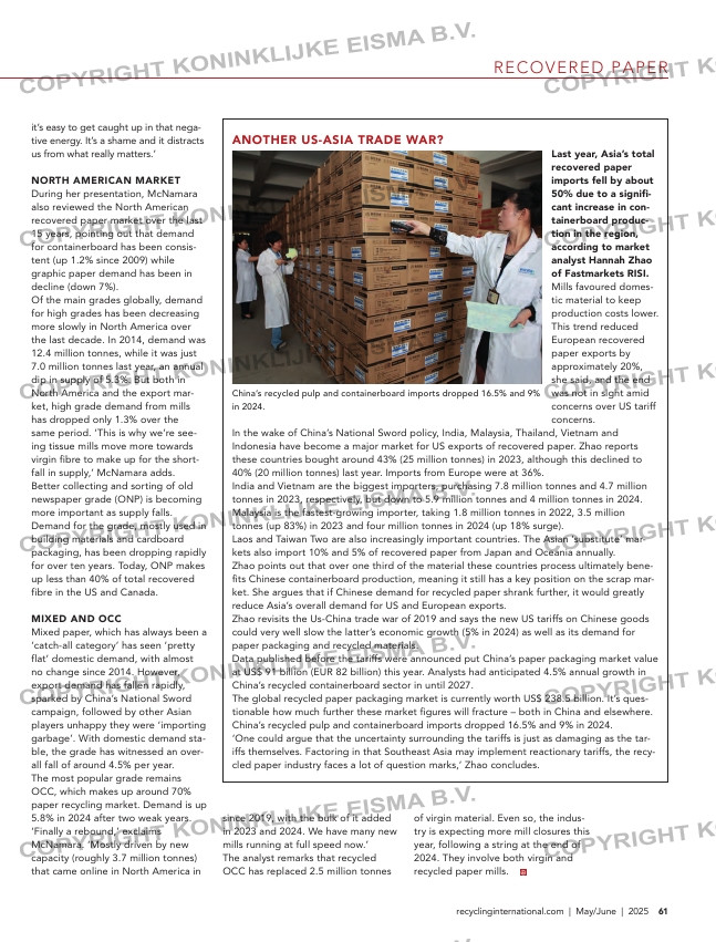fits Chinese containerboard production, meaning it still has a key position on the scrap mar-