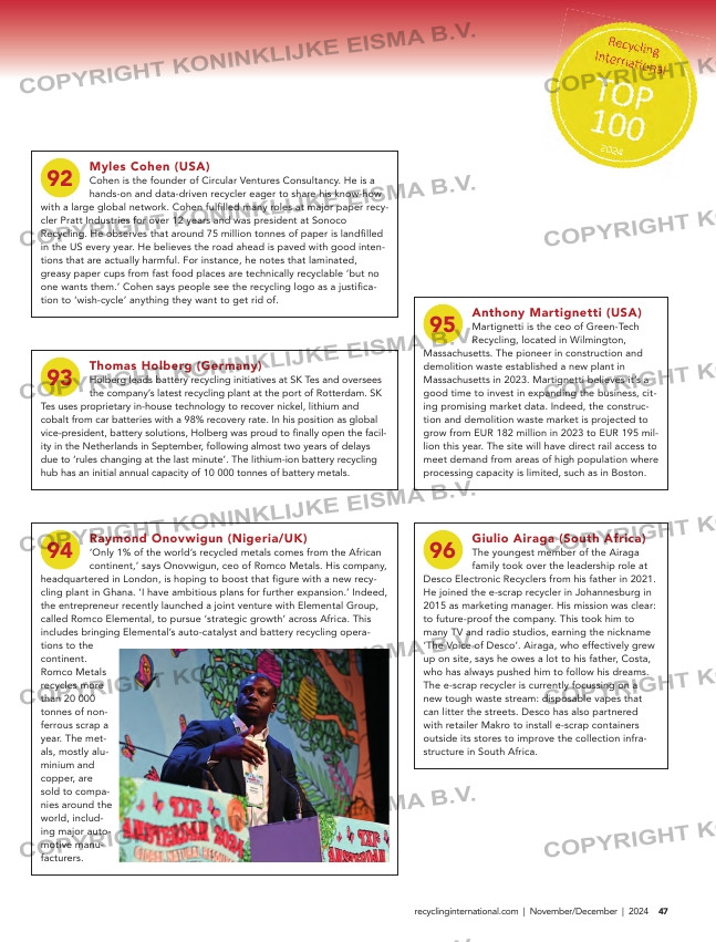 ...�ois is a familiar face at global conferences with an expertise spanning many materials and applica- tions, including cars and e-scrap. He has been with Galloo Group since 2000 and is an advocate for recyclers’ interests through the Fren...