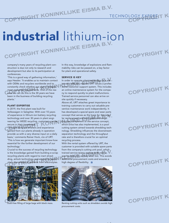 ...onnel can also arrive on site quickly if necessary. Above all, URT attaches great importance to training customers to carry out valuable pre- ventive maintenance work independently. It has developed a special spare and wear parts concept t...