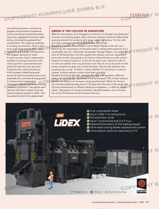 ... to issues surrounding ‘green steel’ and how recyclers would be affected by growing demand for products with lower carbon emissions. For the mills and their customers, that invariably means using scrap. Divisional president Shane Mellor,...