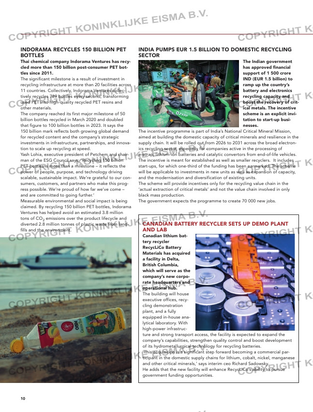 INDIA PUMPS EUR 1.5 BILLION TO DOMESTIC RECYCLING