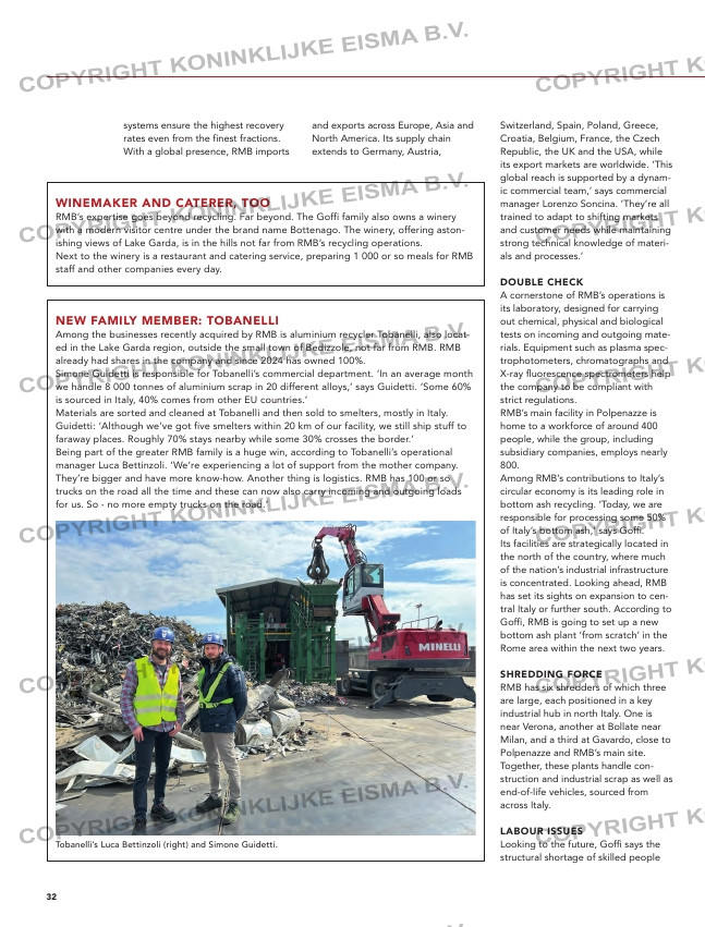 we handle 8 000 tonnes of aluminium scrap in 20 different alloys,’ says Guidetti. ‘Some 60%