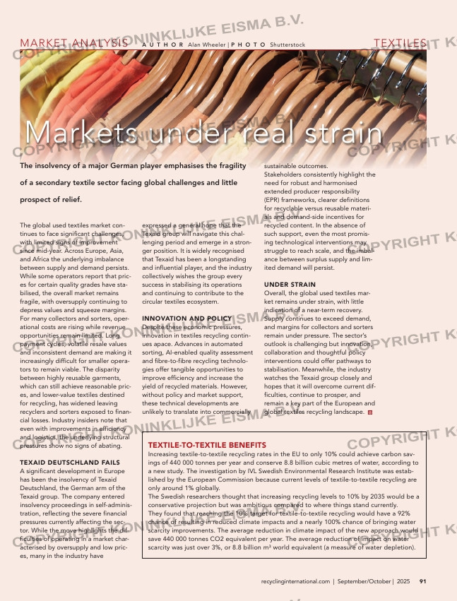 They found that reaching the 10% target for textile-to-textile recycling would have a 92%