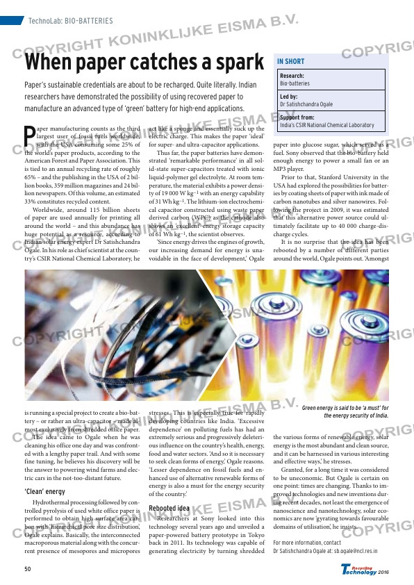 Paper’s sustainable credentials are about to be recharged. Quite literally. Indian