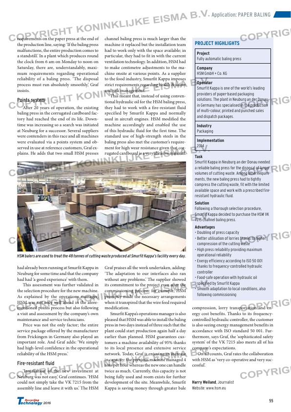 HSM balers are used to treat the 48 tonnes of cutting waste produced at Smurfit Kappa’s facility every day.