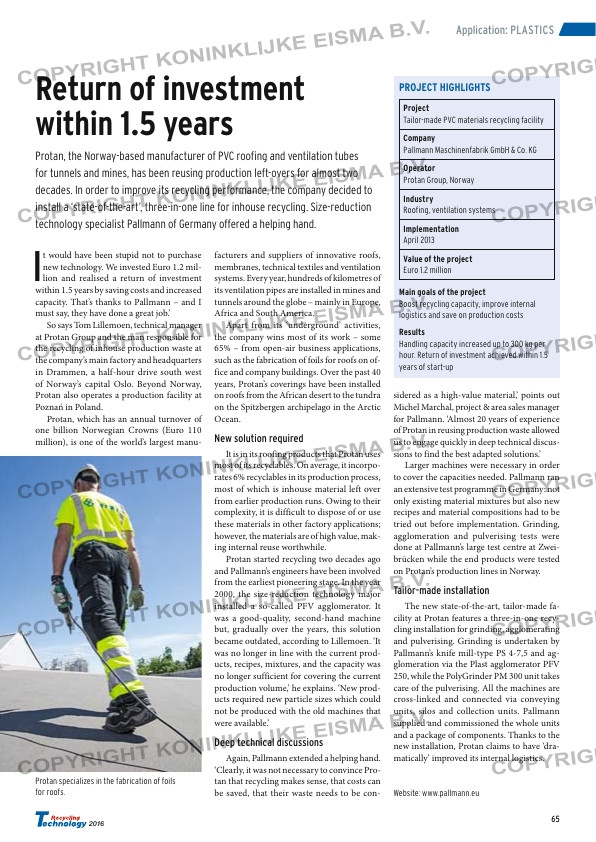 install a ‘state-of-the-art’, three-in-one line for inhouse recycling. Size-reduction