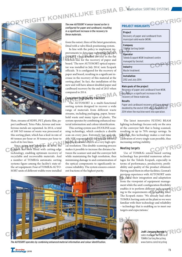 The AUTOSORT operates by combining enhanced material information and colour identification.