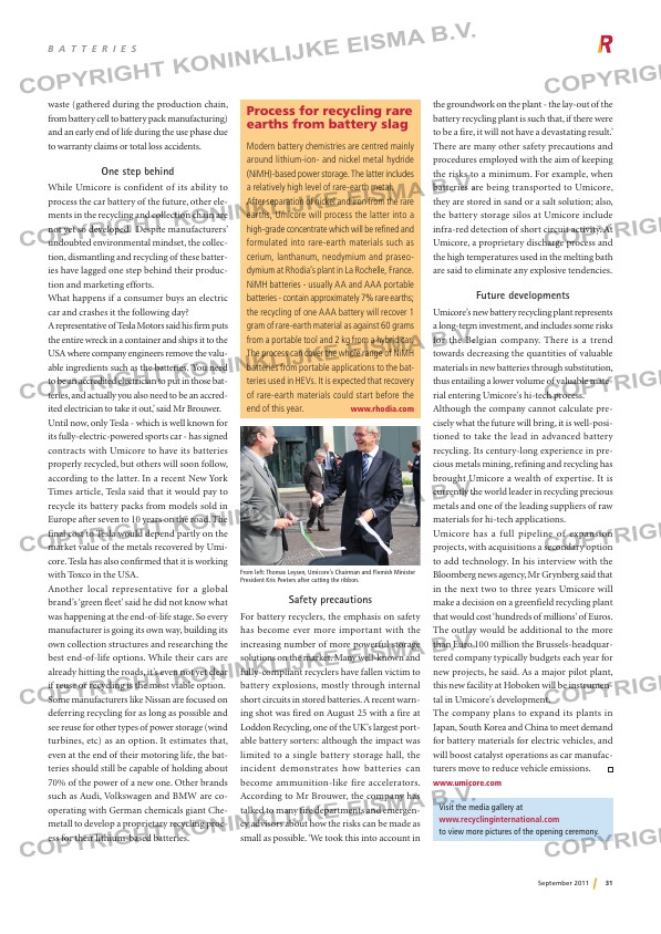 earths, Umicore will process the latter into a
