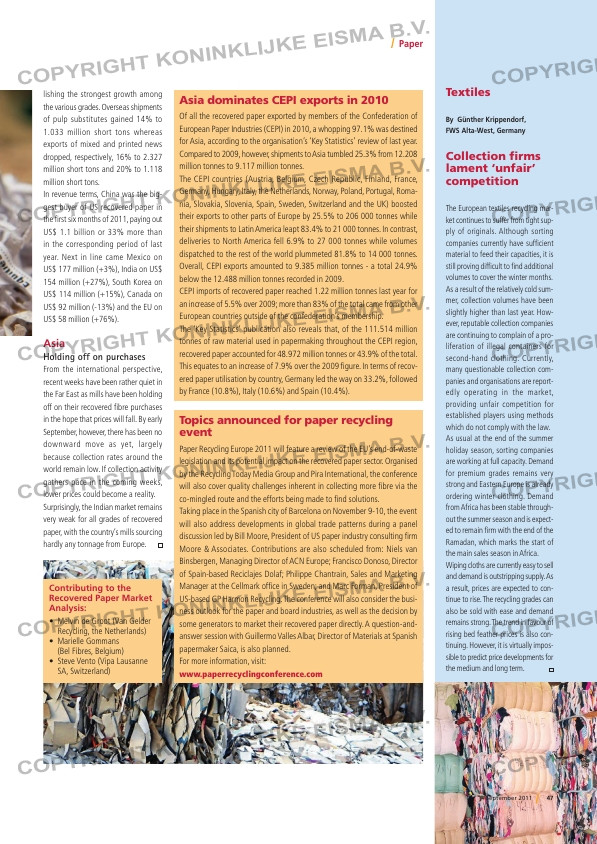 Paper Recycling Europe 2011 will feature a review of the EU’s end-of-waste