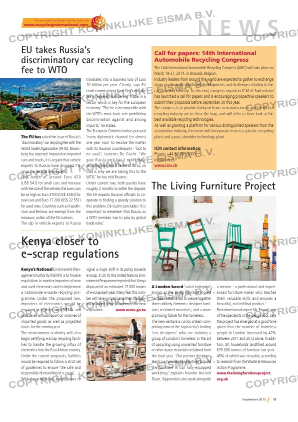 car recycling industry. To this end, congress organiser ICM of Switzerland