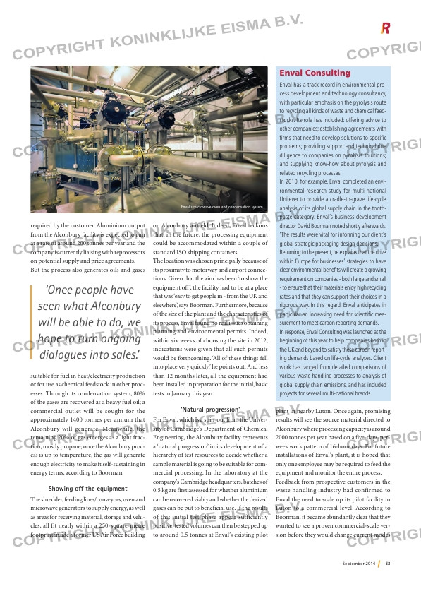 installations of Enval’s plant, it is hoped that