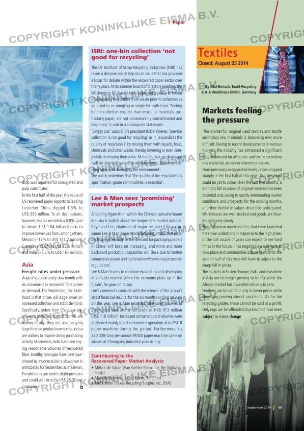 ...gium) • Joel Litman (Texas Recycling/Surplus Inc, USA) RI-7 Analysis Paper&Textiles.indd 69 28-08-14 15:06 recycling rate...