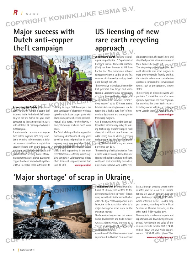 ...ile exports were at US$ 59.42 million (down 7%) www.metalukraine.com RI-7 p00_NEWS.indd 8 07-09-15 10:02 recycling rate...