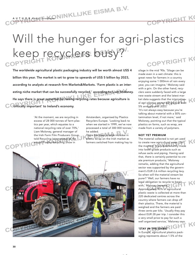 ... market that can be successfully recycled,’ according to Liam Moloney. He says there is great potential for raising recycling rates because agriculture is ‘critically important’ to Ireland’s economy. total plastics waste stream. In the US, ...